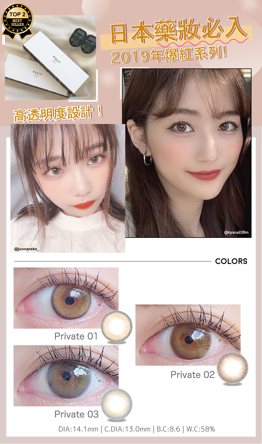 ReVIA Private 1Day series bring a mysterious alluring look, which can enlarge your pupil gently and naturally.