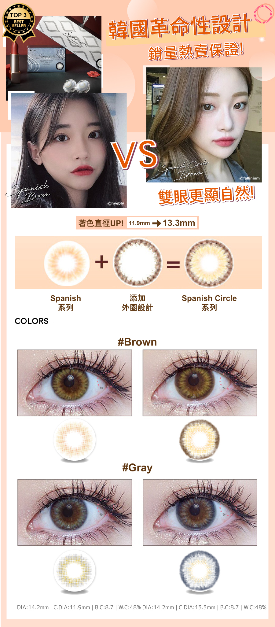 Another hot Spanish series are for those like a brighter and delicate vibe look! Its slightly darker outer circle makes it more natural and creates a mysterious, mixed blood look.