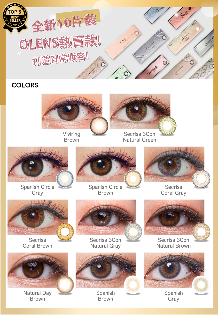 OLENS launched a new 1day 10pcs package on all top hit colors! There are 7 classic and hot color choices, from brown, gray and even green to create a variety of daily makeup. Come and choose the color that suit you best.